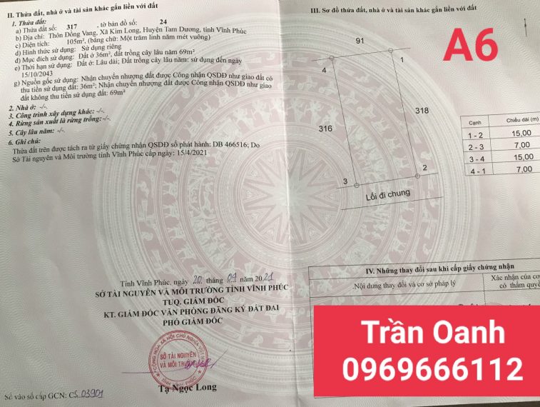 Tôi cần chuyển nhượng gấp Lô Đất tại Thôn Đồng Vang, Xã Kim Long, Huyện Tam Dương, Tỉnh Vĩnh Phúc.