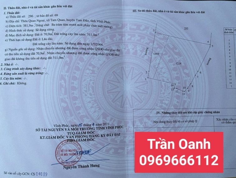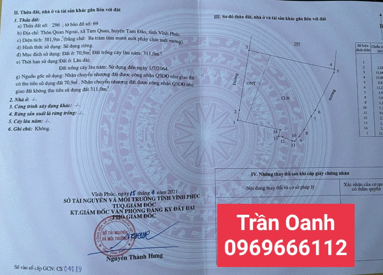 Diện Tích: 381,9 m2 ( thổ cư 70.9m2)